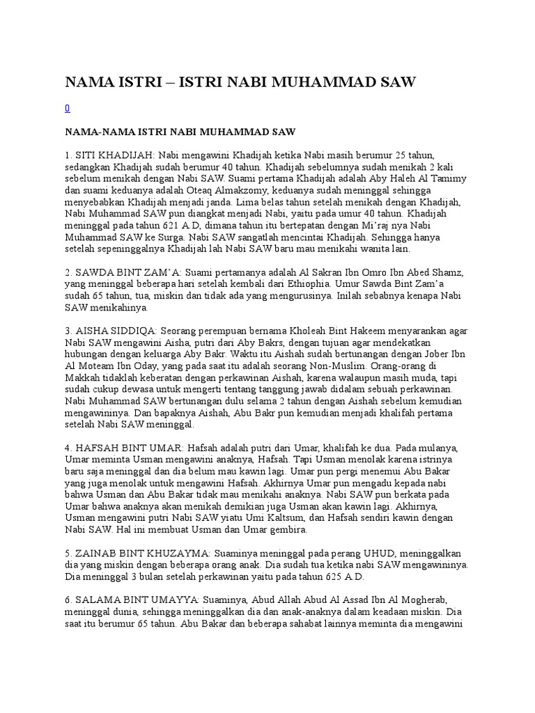 Jumlah Dan Nama Nama Isteri Nabi Muhammad Serta Riwayatnya Jadipintar Com