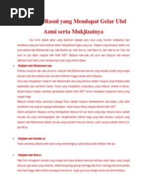 Sebutkan 5 Rosul Ulul Azmi Dan Mikjizatnya Brainly Co Id