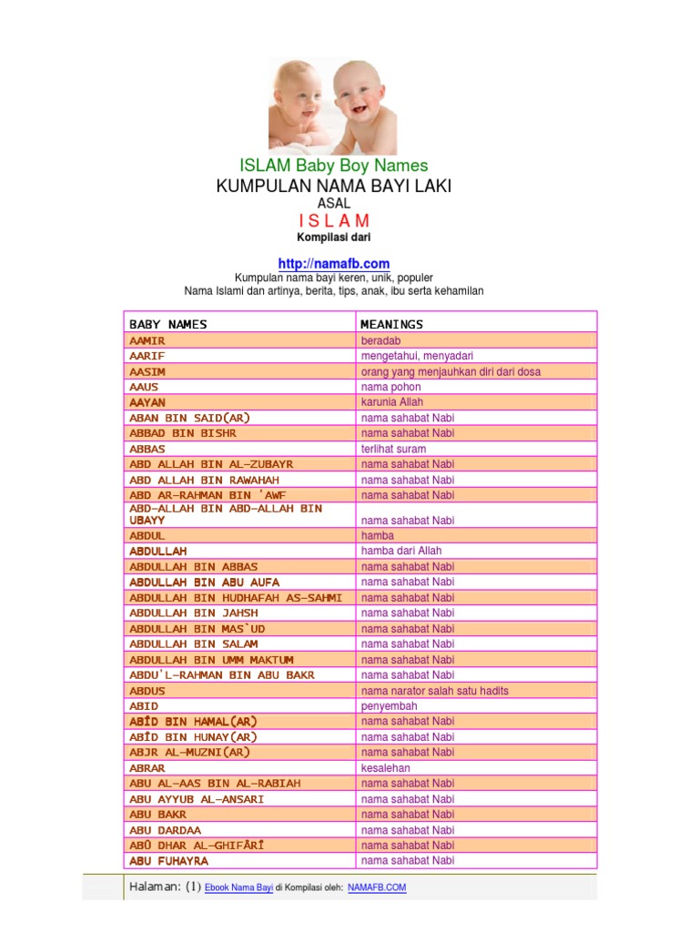 100 nama bayi laki laki modern beserta artinya untuk calon jagoan kecil anda. Nama sahabat nabi yang memiliki doa agar sang anak menjadi seorang manusia yang bijaksana riang gembira dan bersinar terang semasa kehidupannya. Kalau anda masih tengah memilih nama bayi lelaki yang sesuai untuk anak anda itu apa kata anda jengun 100 nama yang kami sediakan ini. Kandungan nama sahabat pada padupadan ini yaitu ammar diambil dari nama sahabat nabi muhammad yang bernama ammar bin yasir yang diartikan keberhasilan yang berbuah manis berkat kerja keras.