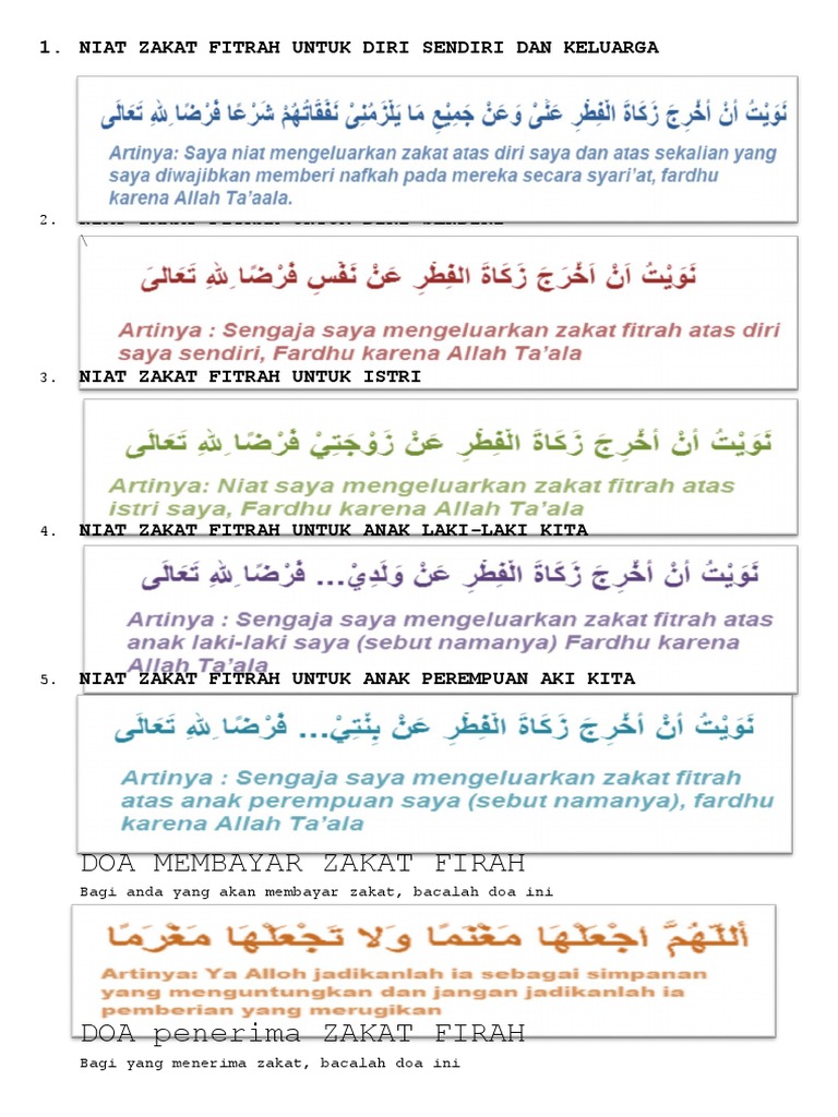 Niat Zakat Fitrah Untuk Diri Sendiri Dan Keluarga Bahasa Arab Dan Artinya