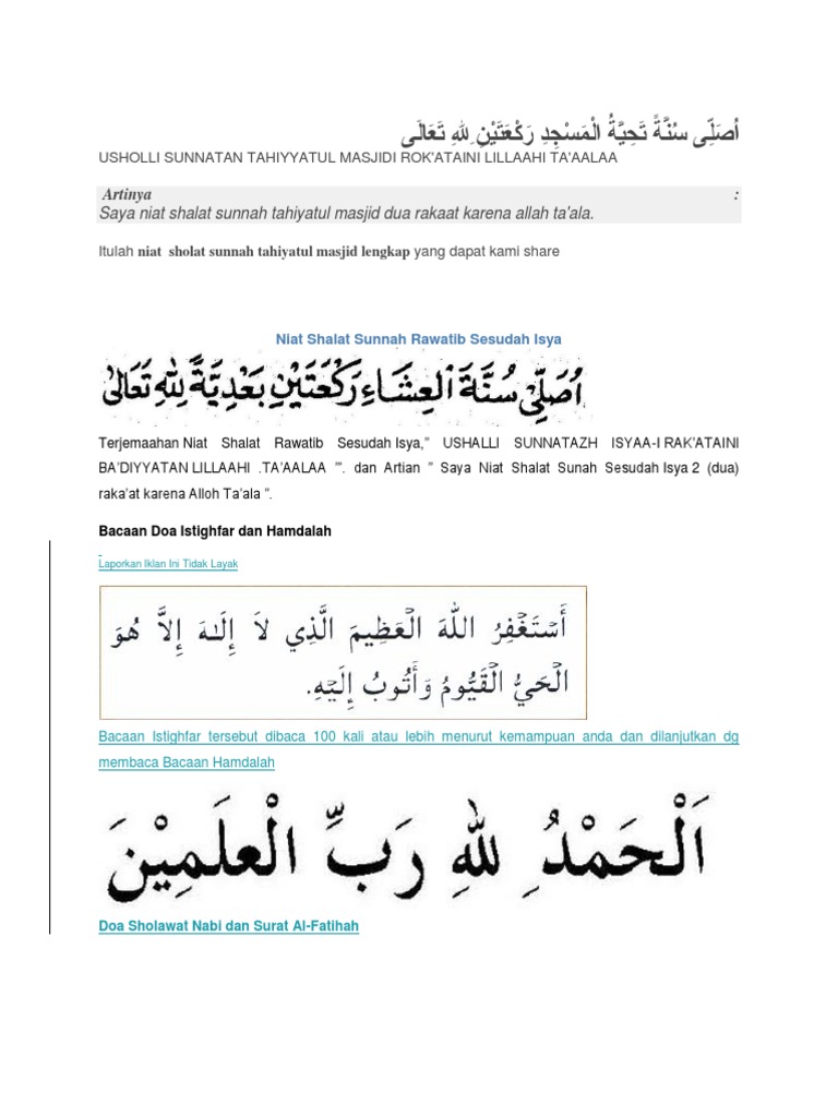 Niat Sholat Sunnah Isya Dan Masuk Masjid