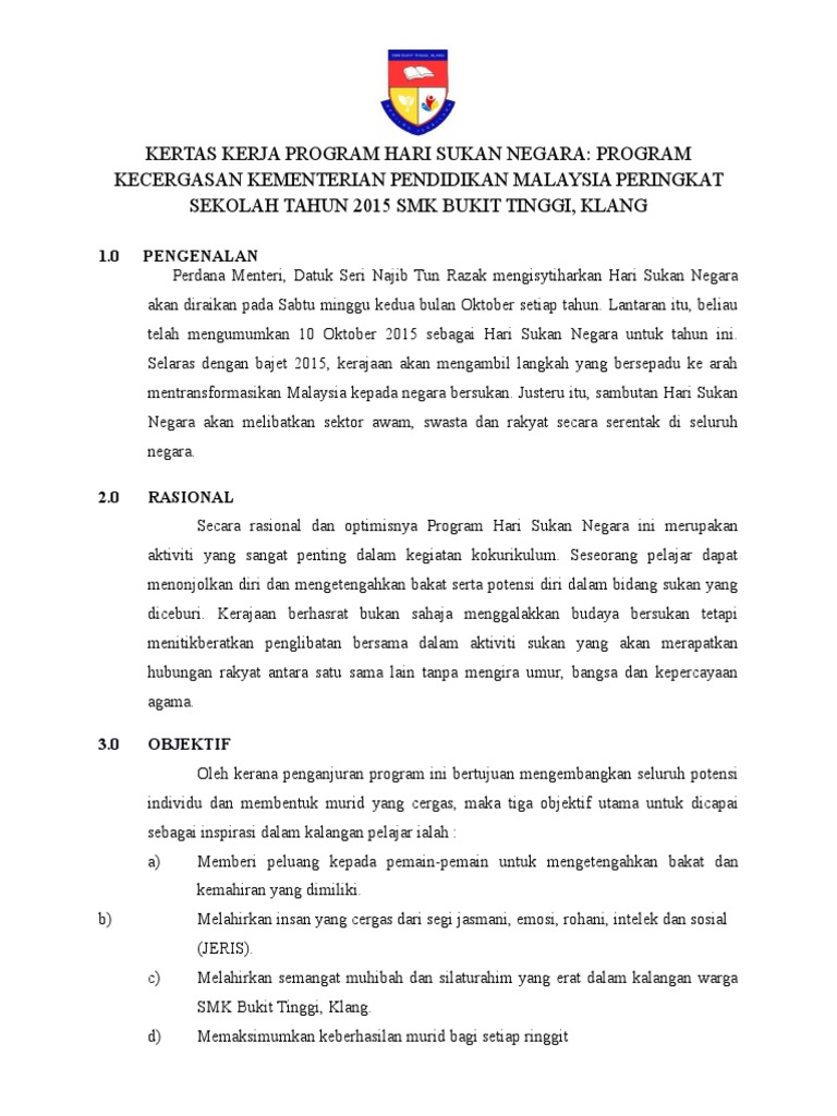 Doc Kertas Kerja Program Hari Sukan Negara Smk Ungku Aziz Sabak Bernam Selangor Hanita Shahadan Academia Edu