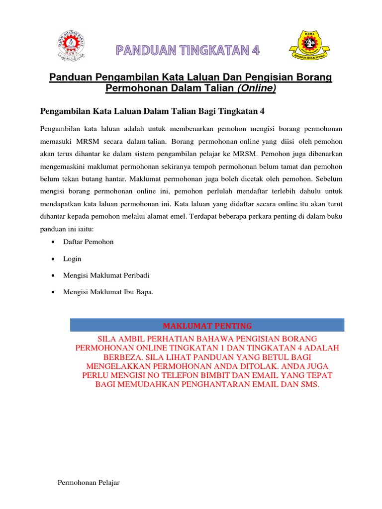 Permohonan Secara Online Kemasukan Ke Mrsm Tingkatan 4 Dibuka Mulai 13 September 2016 Hingga 21 Oktober 2016 Laman Web Rasmi