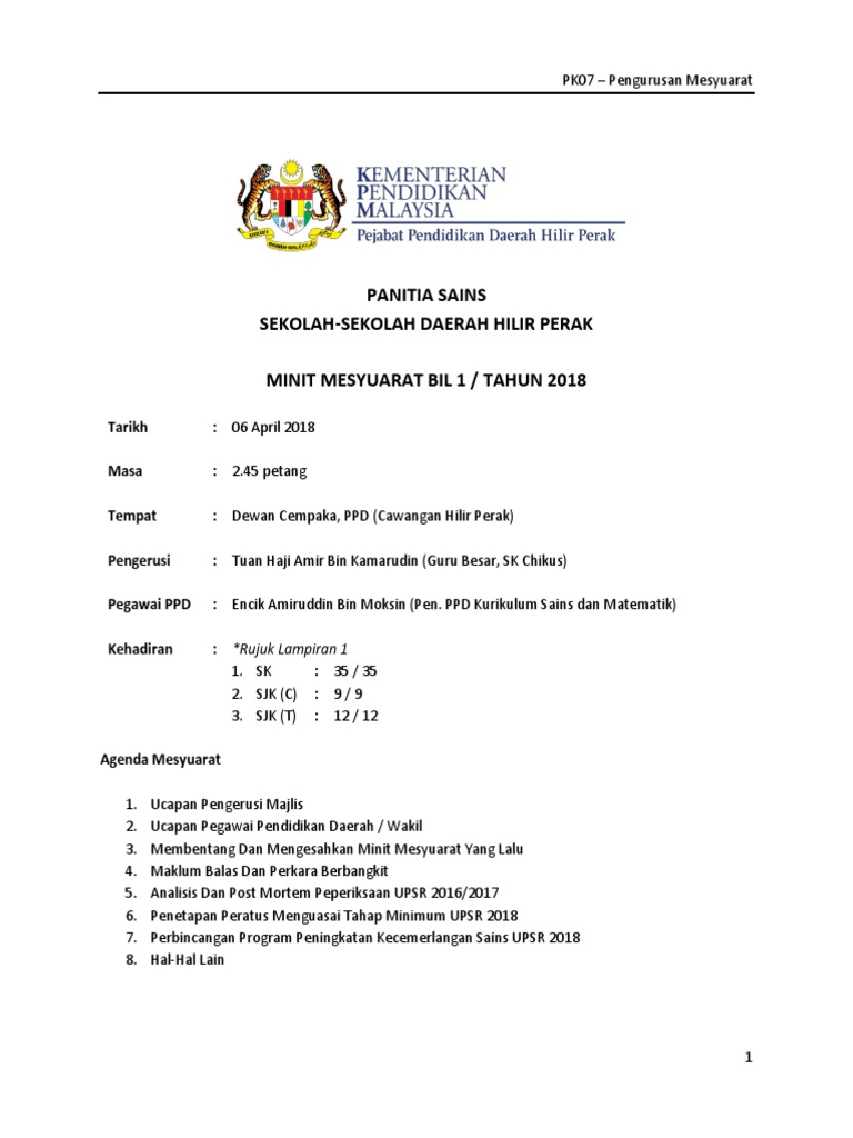 Panitia Sains Sekolah Sekolah Daerah Hilir Perak Minit Mesyuarat Bil 1 Tahun 2018
