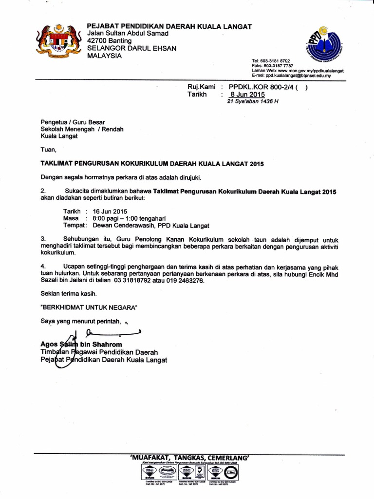 Tinta Pegawai Pendidikan Daerah Pejabat Pendidikan Daerah Kuala Langat