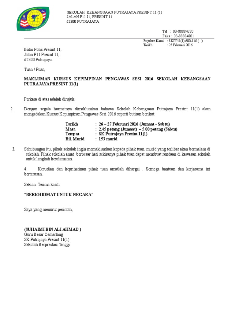 Surat Rasmi Untuk Pihak Polis Surat Rasmi Ra