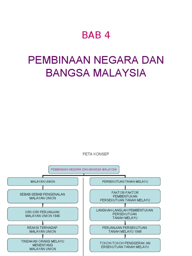 Bab 4 Pembinaan Negara Dan Bangsa Bab 4 Pembinaan Negara Dan Bangsa Malaysia Shahir 5 Kata Kunci Faktor Faktor Pembentukan Persekutuan Tanah Pdf Document