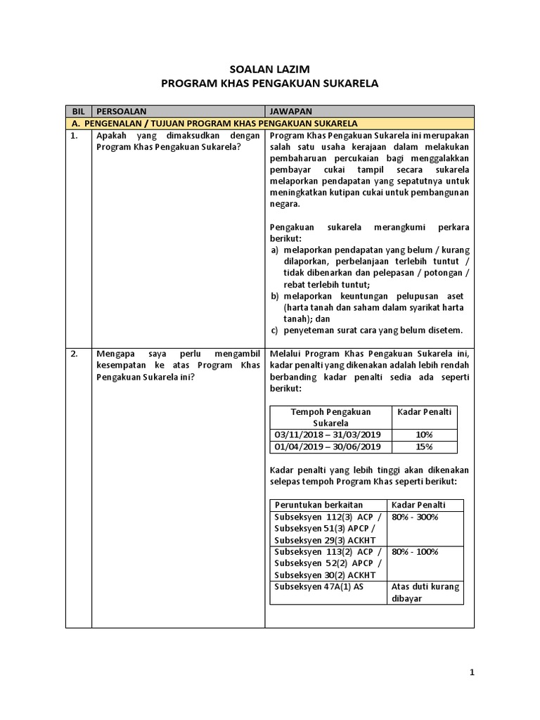 Lhdnm Tawar Program Khas Pengakuan Cukai Secara Sukarela