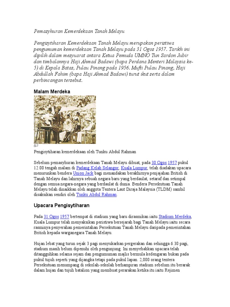 Pemasyhuran Kemerdekaan Tanah Melayu Wikipedia Bahasa Melayu Ensiklopedia Bebas