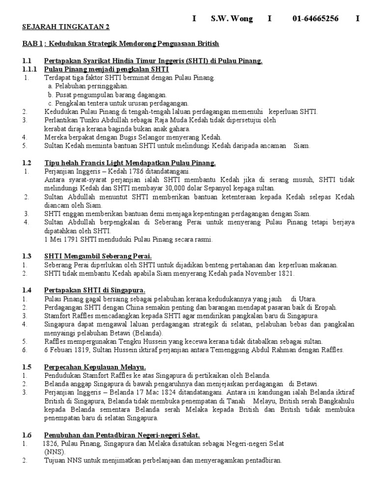 Sejarah Tingkatan Dua Negeri Negeri Selat