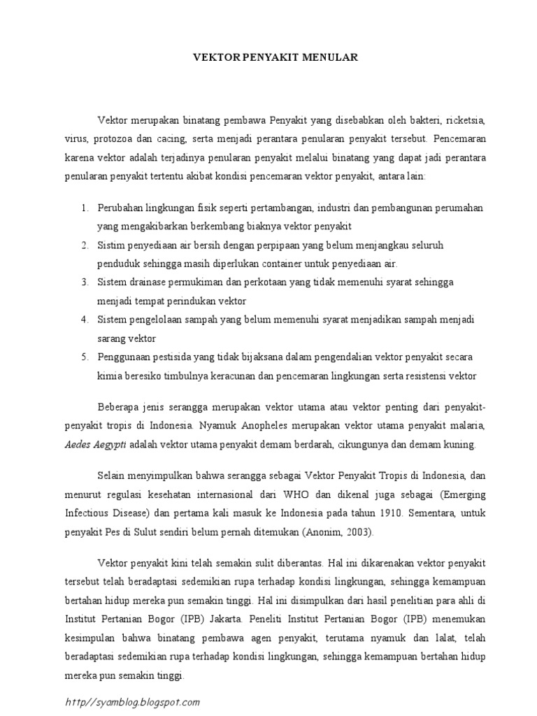 Penyakit Yang Merebak Disebabkan Oleh Vektor Adalah