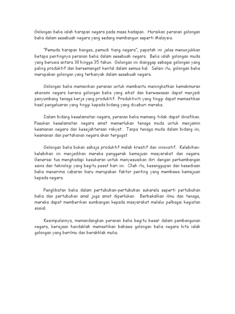 Golongan Belia Ialah Harapan Negara Pada Masa Hadapan