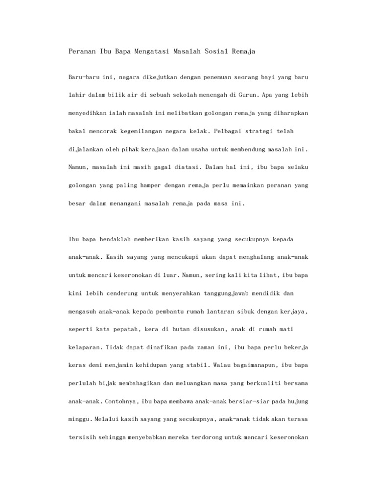 Peranan Ibu Bapa Dalam Menangani Masalah Sosial Remaja