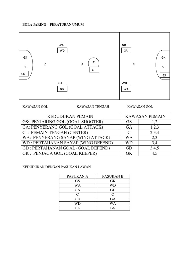 Peraturan Kedudukan Pemain Bola Jaring