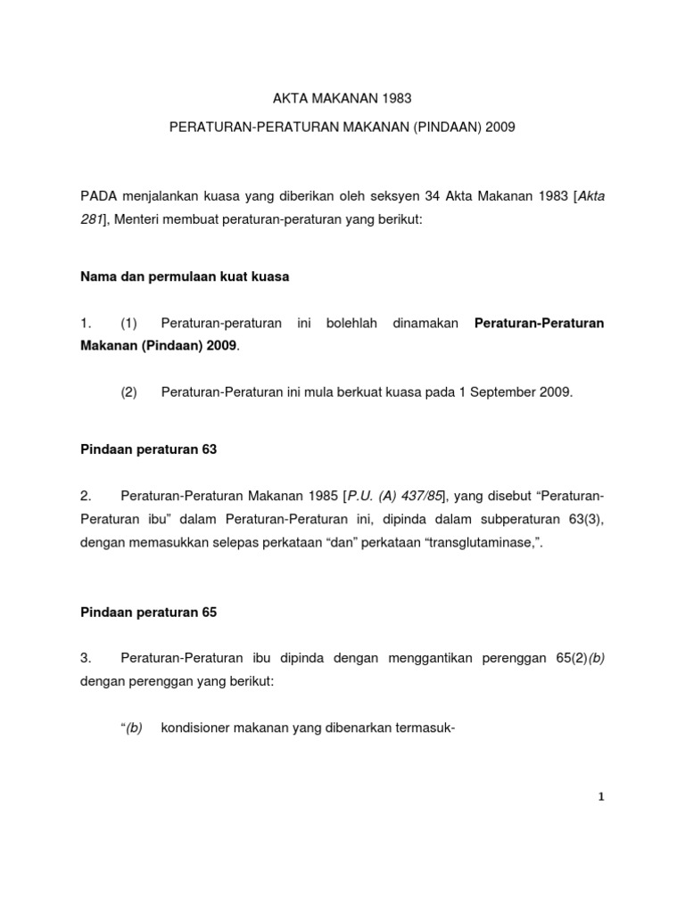 Muat Turun Draf Pindaan Peraturan Peraturan Makanan 1985 Pdf Document