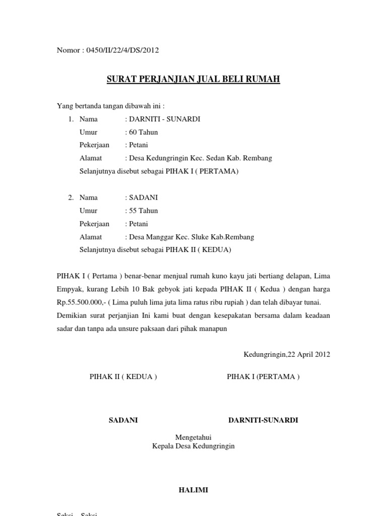 Surat Perjanjian Jual Beli Rumah Pdf Free Download