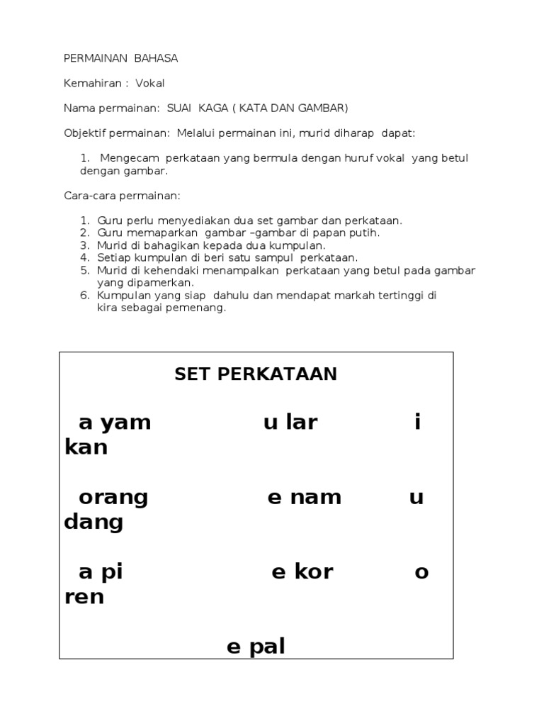 Permainan Bahasa Kemahiran 3 Huruf Vokal