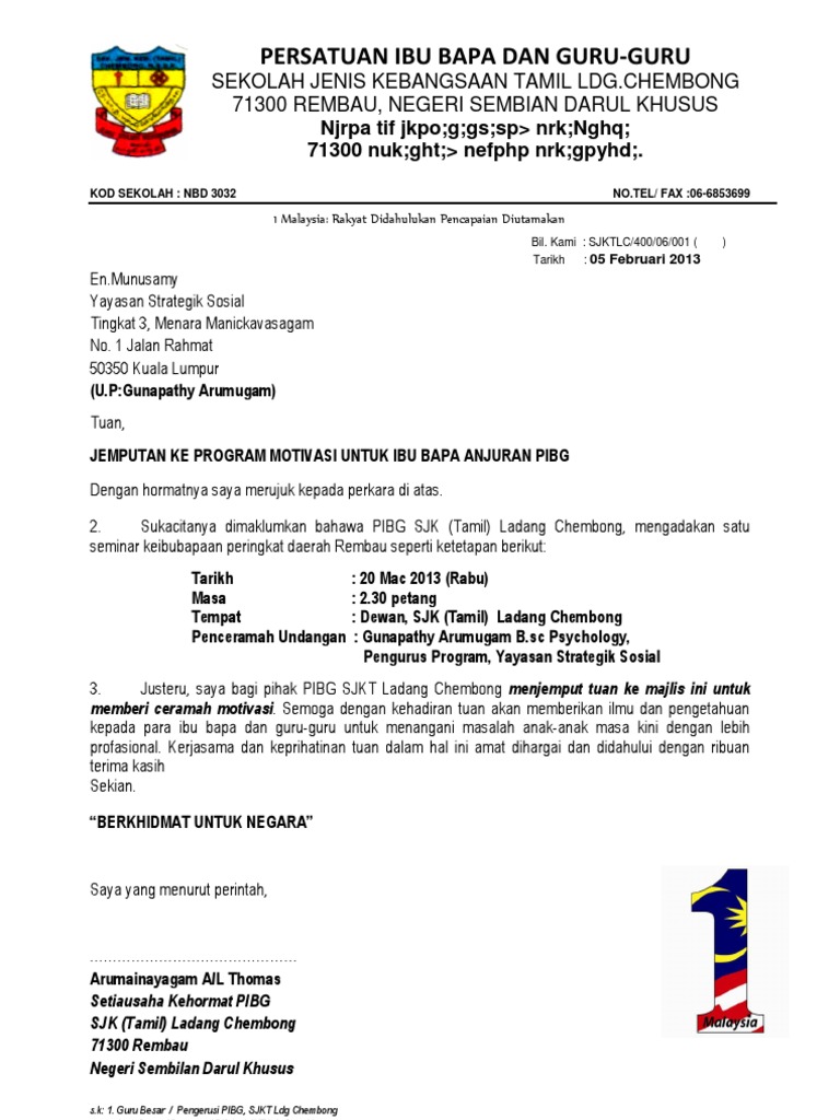 Surat Jemputan Ajk Pibg Program Penutupan Transisi Tahun 1 2020
