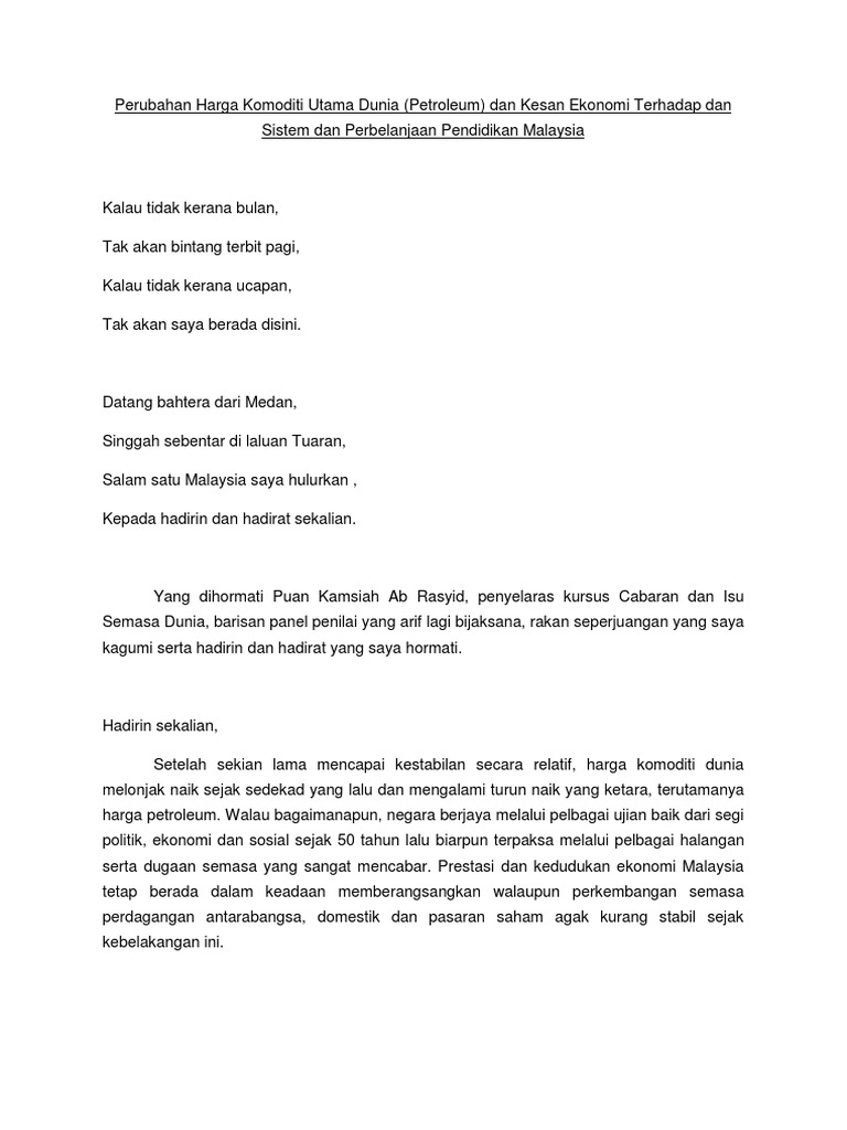 Perubahan Harga Komoditi Utama Dunia Petronas By Fiza Yazid