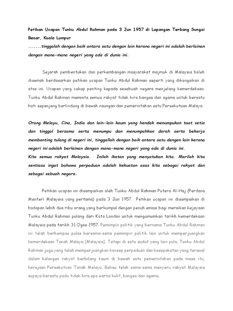 Teks Ucapan Tunku Abdul Rahman Sempena Kemerdekaan Malaysia Forms Of Government
