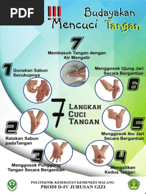 Ia untuk murid murid prasekolah dan tadika berusia 4 6 tahun untuk sebagai panduan mereka membasuh tangan dengan betul dan guru serta pembantu pengurusan guru boleh memberi penerangan dan menunjukkan cara pada. 3 5 5 4 undian tag berkaitan. Poster 7 langkah mencuci tangan yang betul oleh kkm dalam bentuk pdf boleh dimuat turun di sini 28 8mb. Dengan mencuci tangan anda pakai sabun baik sebelum makan atau pun sebelum memulai pekerjaan akan menjaga kesehatan tubuh anda dan mencegah penyebaran penyakit melalui kuman yang menempel di tangan.
