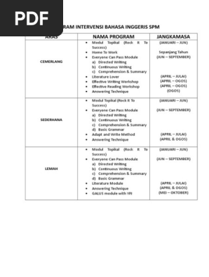 Program Intervensi Bahasa Inggeris Spm 2018