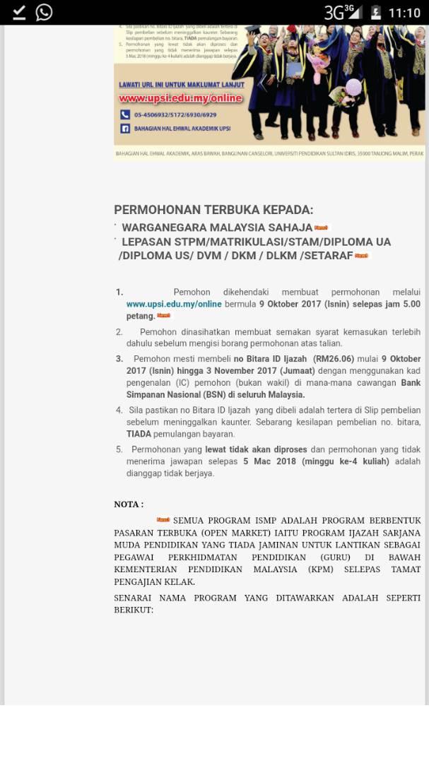 Upsi Malaysia Pa Twitter Boleh Terus Hubungi Kami Di Talian 05 4505482 5550 5511 Atau Emel Di Admission Ips Upsi Edu My Laman Facebook Rasmi Institut Pengajian Siswazah Upsi Https T Co Tse4p3wrfz Universiti Pendidikan Sultan Idris