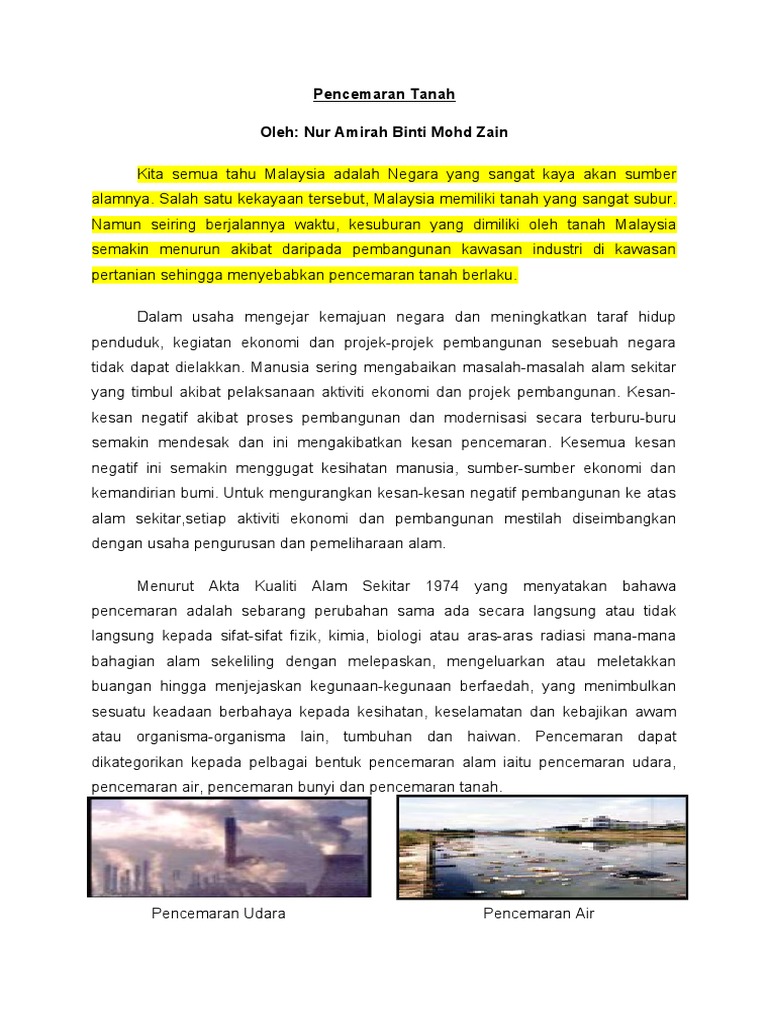 Nur Amirah Binti Mohd Zain Pencemaran Tanah