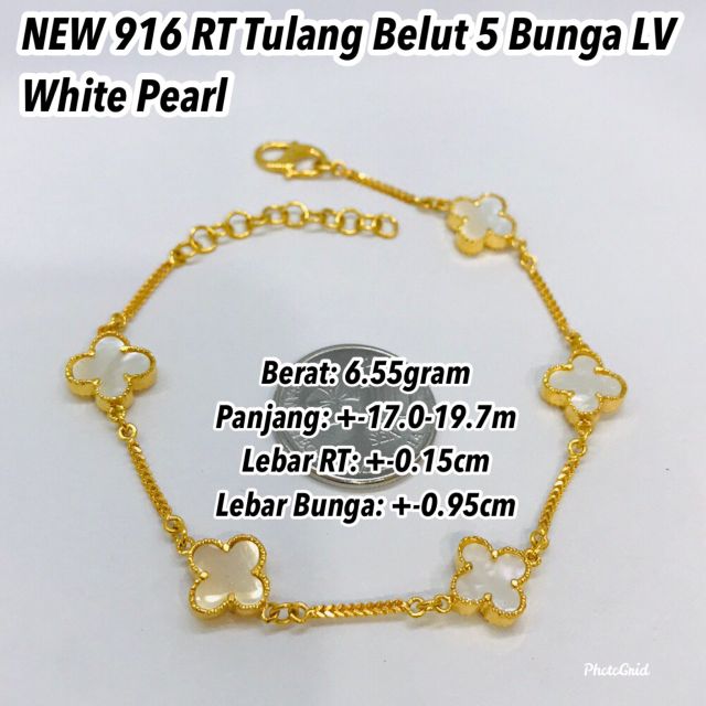 2020 Limited Design Emas 916 Rantai Tangan Emas 916 Tulang Belut 5 Bunga Lv White Pearl Shopee Malaysia