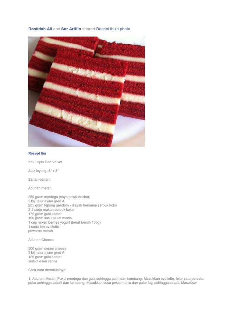 Let S Masak Kek Lapis Red Velvet Cheese Resepi Sury Facebook